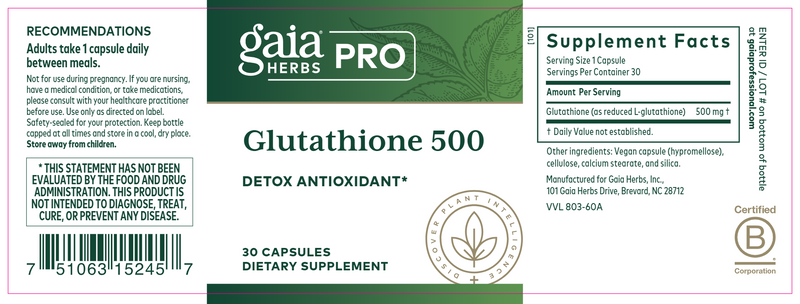 Glutathione provides antioxidant activity within cells, quenching free radicals from normal metabolic processes.* Glutathione 500 provides 500 mg of reduced glutathione per each vegan capsule.