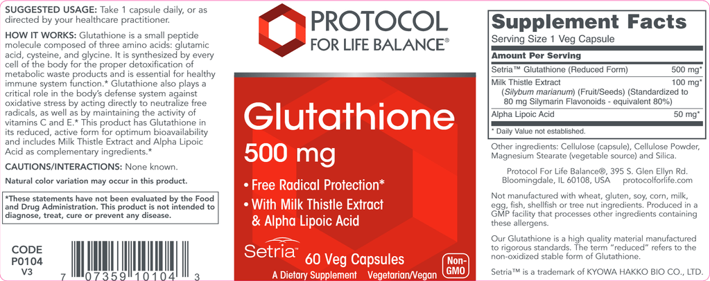 Glutathione is a small peptide molecule composed of three amino acids: glutamic acid, cysteine, and glycine. It is synthesized by every cell of the body for the proper detoxification of metabolic waste products and is essential for healthy immune system function.* Glutathione also plays a critical role in the body’s defense system against oxidative stress by acting directly to neutralize free radicals, as well as by maintaining the activity of vitamins C and E. This product has glutathione in its reduced, active form for optimum bioavailability and includes milk thistle extract and alpha lipoic acid as complementary ingredients. Our glutathione is a high quality material manufactured to rigorous standards. The term “reduced” refers to the non-oxidized stable form of glutathione.
