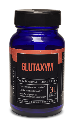GLUTAXYM™ is a blend of eight (8) plant-based proteolytic Enzymes that includes Peptidase DPP-IV as well as four Enzymes that break down starches and sugars.