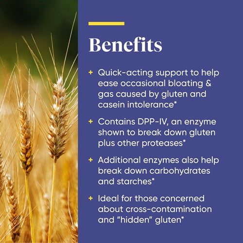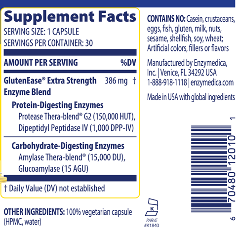GlutenEase™ Extra Strength contains Protease Thera-blend™ (G2) enzymes along with DPP-IV activity for providing more than double the digesting power for foods containing gluten and casein compared to GlutenEase.* Starch-digesting amylase enzymes assist in the digestion of the carbohydrate portion of grains, such as wheat, which contain gluten.