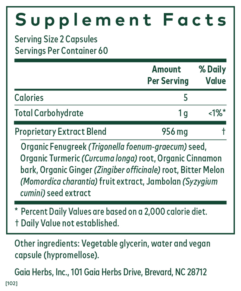 Traditional herbs for helping maintain already healthy blood sugar levels.* Contains Cinnamon bark, Bitter Melon, Fenugreek, and Ginger.