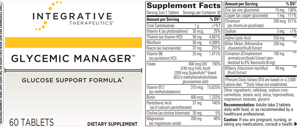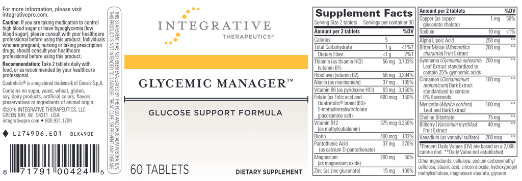 Glycemic Manager™ supports healthy blood sugar metabolism.* This comprehensive formula, which combines essential nutrients and powerful botanicals, supports a healthy insulin response and lessens the impact of foods with a high Glycemic Index.*