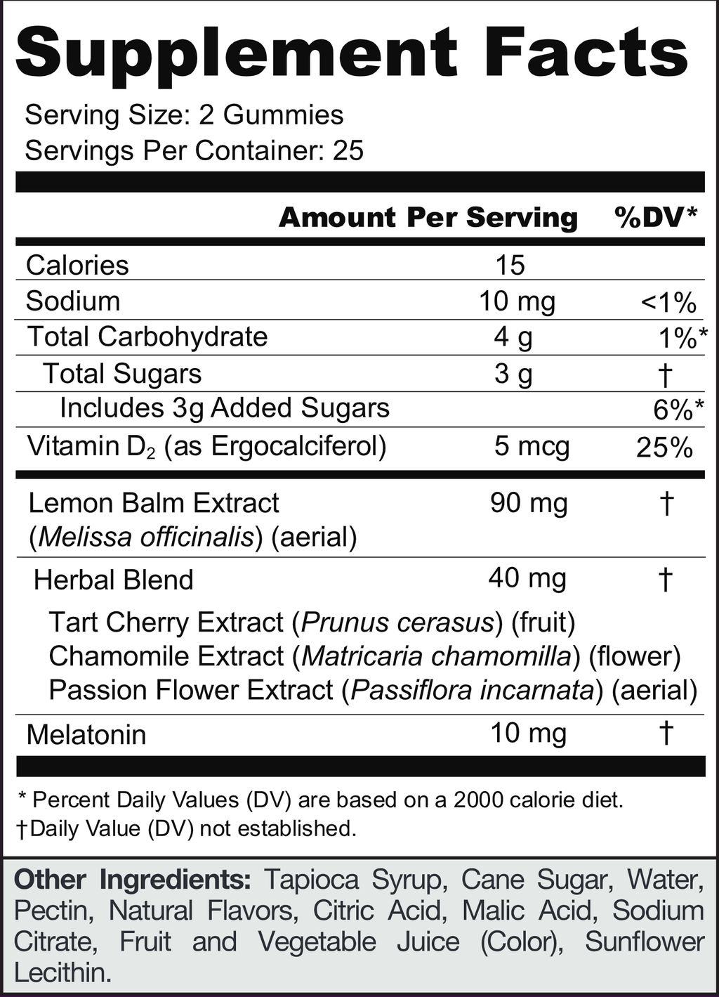 Invest in rest and make sleep your superpower. These powerful dreamy little gummies are made with Lemon Balm and Vitamin D; as well as 10mg of Melatonin per serving to help promote sleep, so you can wake up feeling refreshed and revitalized!* These ingredients may sound like a snoozefest, however they’re anything but boring. So, get ready to float away into the sleep of your dreams, with a taste that’s just as sweet!