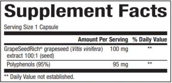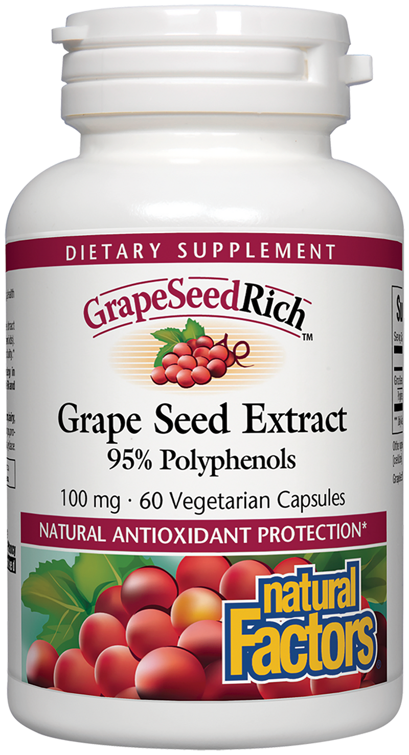 GrapeSeedRich® 100 mg is a standardized extract with 95% polyphenols (polyphenol flavonoids). The result is a leading-edge antioxidant with optimal strength and purity.*