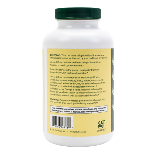 Supports Overall Health & Well-Being. Omega-3 Optimize softgels deliver potent EPA and DHA fatty acids, essential for maintaining heart, brain, and joint health, as well as overall wellness.