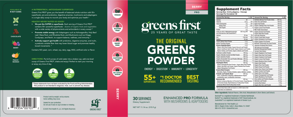 Part of Your Daily Routine: Just mix one measured scoop (included) with 8-12 ounces of water or juice, or blend with your favorite smoothie recipe. Greens First® is the delicious, fast, and easy way for the entire family to enjoy the benefits of a diet rich in colorful fruits and vegetables without the difficulty of eating such a diverse diet.*