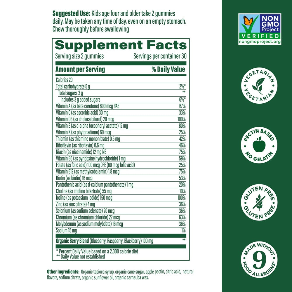 Delicious berrylicious-flavored gummies formulated to support kids and their nutritional needs*
