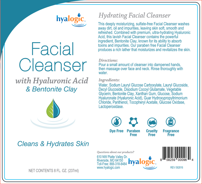 This deeply moisturizing, sulfate-free Facial Cleanser helps wash away dirt, oil and impurities, leaving skin feeling soft, smooth and refreshed. Combined with premium, ultra-hydrating Hyaluronic Acid, this lavish Facial Cleanser contains the powerful ingredient, Bentonite Clay, known for its ability to absorb toxins and impurities. Hyalogic®'s paraben free Facial Cleanser produces a rich lather that moisturizes and nourishes the skin for a healthy appearance.
