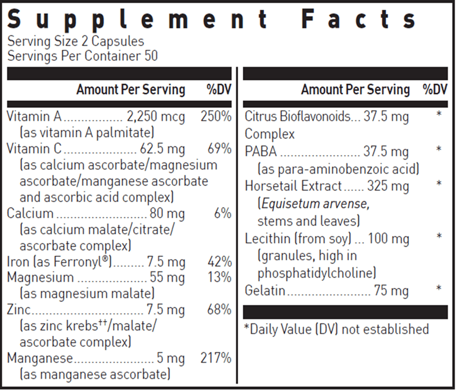 Hair, Skin and Nail Plus, provided by Douglas Laboratories, supplies beneficial amounts of several vitamins, minerals and other nutrients, specially formulated to support healthy hair, skin and nails.