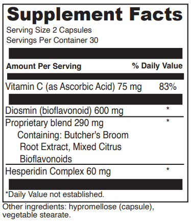 It features a combination of two powerful flavonoids, Diosmin & Hesperidin (in a 10:1 ratio) along with high-quality Butchers Broom Extract and Vitamin C. This formula optimizes vascular elasticity & strength and supports the proper function and structure of leg veins.*