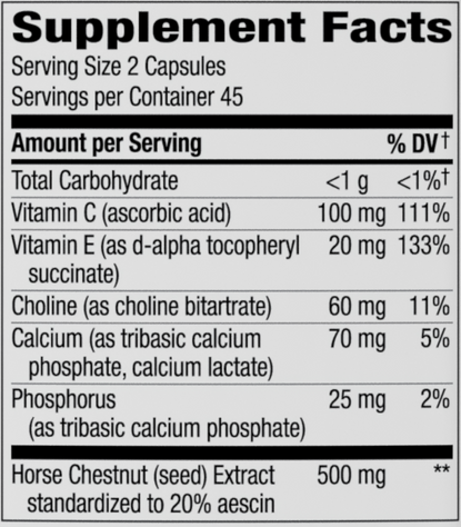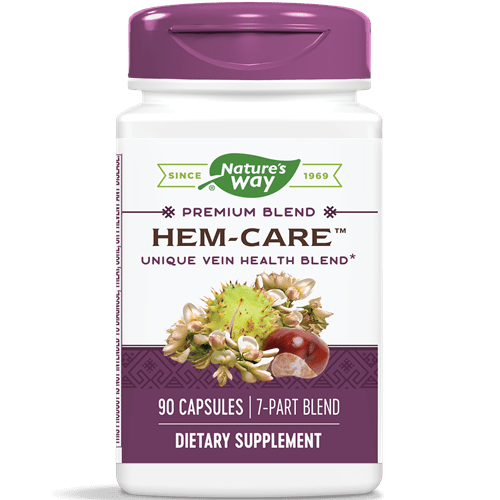 Nature's Way Hem-Care is a seven-part blend of vitamin C, vitamin E, choline, calcium, phosphorus, horse chestnut extract, and Japanese sophora extract.