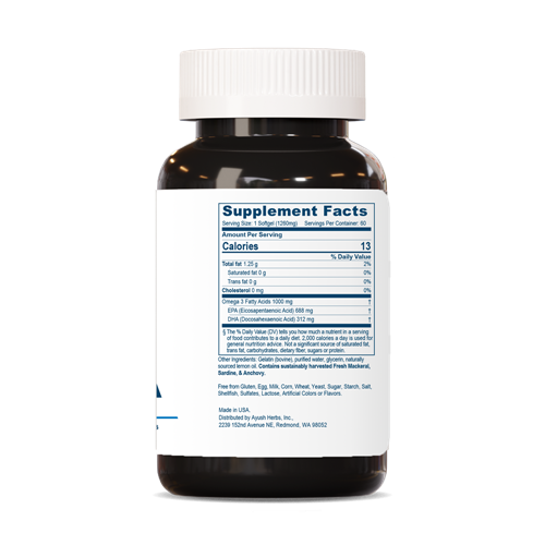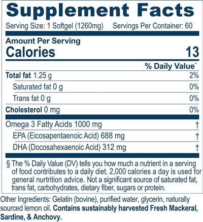Our fish oil contains concentrated EPA and DHA for a truly potent single capsule dosage. Each softgel provides 750mg of EPA and 250mg of DHA. It is sourced from a sustainable Alaskan fishery, which is MSC-certified since April 2005 and has been responsibly managed for over 30 years. Molecularly distilled, our fish oil exceeds industry standards for purity. The full spectrum of laboratory testing meets and exceeds GOED Voluntary Monograph for Omega-3s.