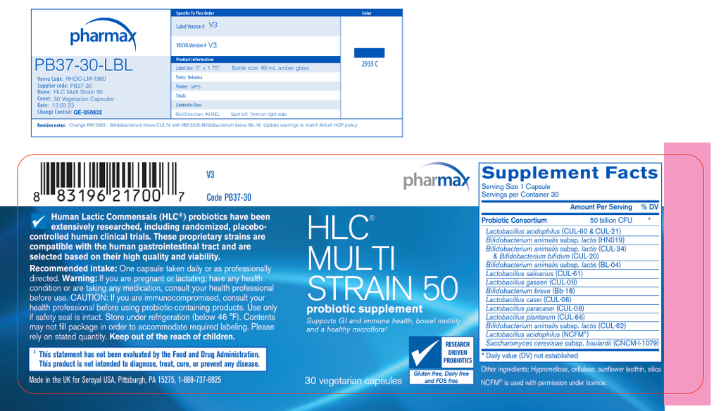 HLC Multi Strain 50 capsules include 50 billion CFU from a combination of 15 probiotic strains. These research-driven strains were selected based on their ability to support gastrointestinal health and promote a favourable gut flora. HLC Multi Strain 50’s probiotic consortium contains proprietary, human-sourced strains, and includes 8 strains of Lactobacilli and 6 strains of Bifidobacteria. Saccharomyces cerevisiae subsp. boulardii (CNCM-I-1079) live yeast cells are also provided for additional microflora support. In a recent placebo-controlled clinical trial, daily supplementation with 1.8 billion CFU of HN019 for two weeks supported gastrointestinal health by reducing intestinal transit time. Following supplementation, intestinal transit time was decreased by approximately 30%, which was associated with an approximate 35.8% reduction in occasional constipation.