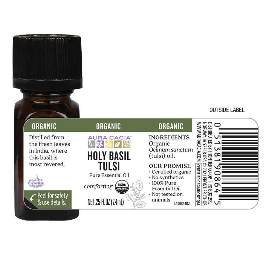 Aura Cacia Organic Holy Basil (Tulsi) Essential Oil is distilled from the fresh leaves in India, where this basil is most revered.