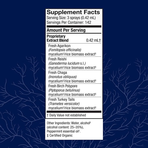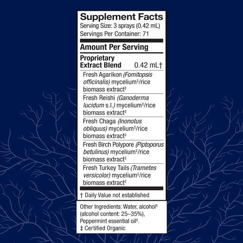 Crafted with mycelium from 5 powerful mushrooms for an engaged immune response, this blend includes essential oil of Sweet Birch for a cool, minty flavor.*