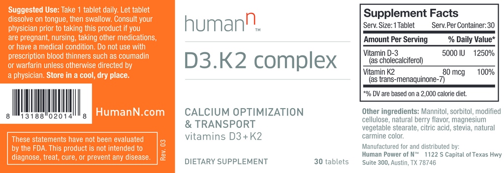 Make your calcium work harder. D3.K2 Complex contains effective, therapeutic amounts of both D3 and K2 all in a once-a-day dose to help your body build strong bones and support healthy arteries at the same time. D3.K2 Complex helps:
