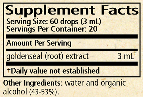 Ingredients: Organic root 1:4.3 dry in a base of organic alcohol and spring water.