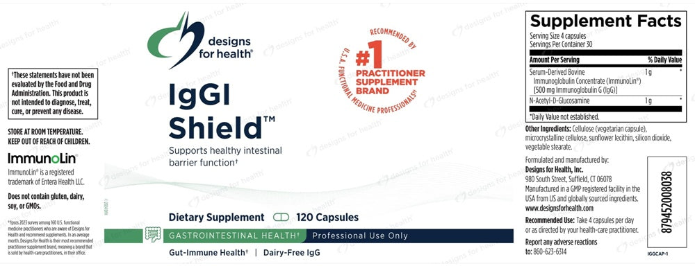 IgGI Shield™ combines ImmunoLin® and N-acetyl-D-glucosamine (NAG) to support gut and immune health by promoting healthy intestinal barrier function, balanced immune and inflammatory responses, and the normal clearance of microbes and toxins from the gastrointestinal (GI) tract.* ImmunoLin®, a dairy-free, serum-derived bovine immunoglobulin (SBI) concentrate, is the only purified source of immunoglobulin G (IgG) available as a dietary supplement.* Immunoglobulins support optimal immune function at the gut and systemic levels.* NAG complements ImmunoLin® by helping to maintain the integrity of the GI tract’s mucosal barrier and further supporting immune health.*