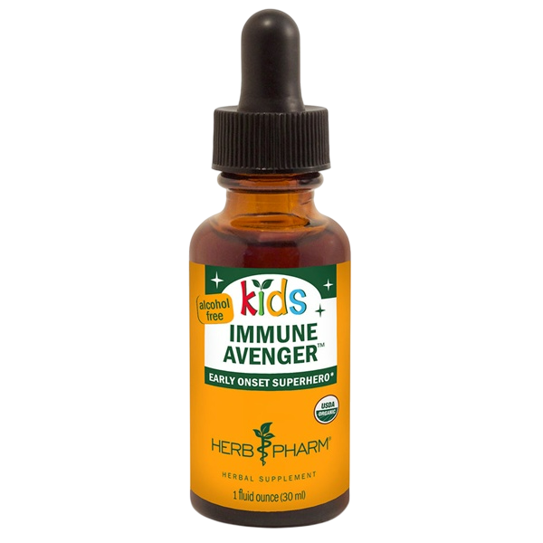 Kids Immune Avenger features Echinacea extract produced from the root of Certified Organic Echinacea purpurea plants. It also includes Black Elderberry extract prepared from the fully ripened berries of Certified Organic Sambucus nigra trees.