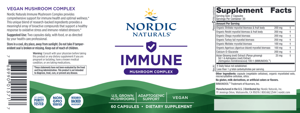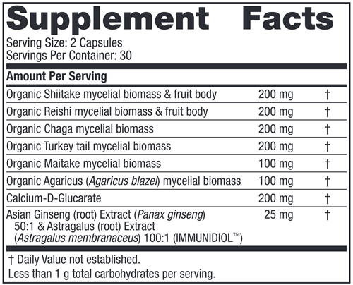 Immune Mushroom Complex provides comprehensive support for immune health and optimal wellness.* This unique blend of research-backed ingredients provides a meaningful array of bioactive compounds that support a healthy response to oxidative stress and immune-related stressors.*