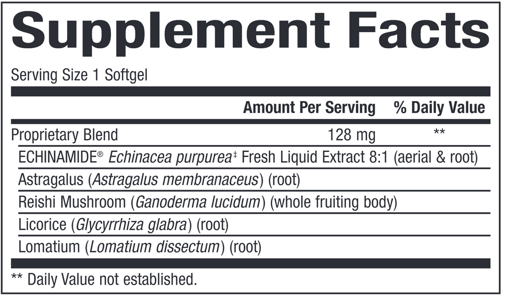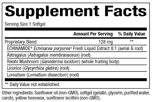 Recommended Adult Dose: 1 softgel 3 times per day or as directed by a health care practitioner. For acute needs, 1 softgel every 2–3 hours, up to 4 times per day, or as directed by a health care practitioner. Take at the first sign of infection. To avoid digestive upset, take with food. Consult a health care practitioner for use beyond 6 weeks.