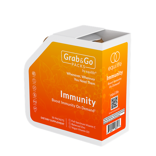 Take your essentials for a strong immune system wherever, whenever you need them with Immunity Grab & Go Packs. Each pack contains three of EquiLife's best-selling supplements Full Spectrum Vitamin C, Balanced Zinc, and Vegan Vitamin D3 in one convenient, travel-ready packet. This is an effective way to ensure your defenses are strong against invaders even on-the-go. Whether you're traveling, going to work or want to keep your must-haves on-hand, these pre-portioned packets make it easy to fortify your immunity wherever you go.