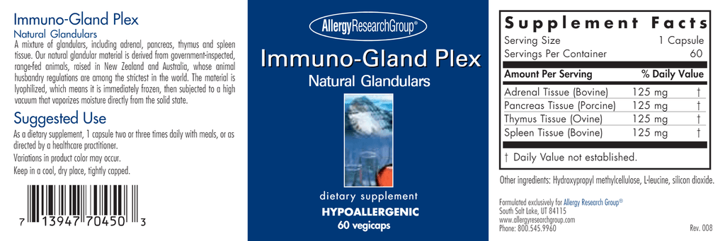 Immuno-Gland Plex provides carefully sourced, freeze-dried adrenal, pancreatic, thymic, and splenic tissues to support immune function.* Derived from range-grazed, government-inspected animals in New Zealand and Australia, this traditional glandular preparation preserves key nutrients and bioactive compounds to support immune health and vitality.*
