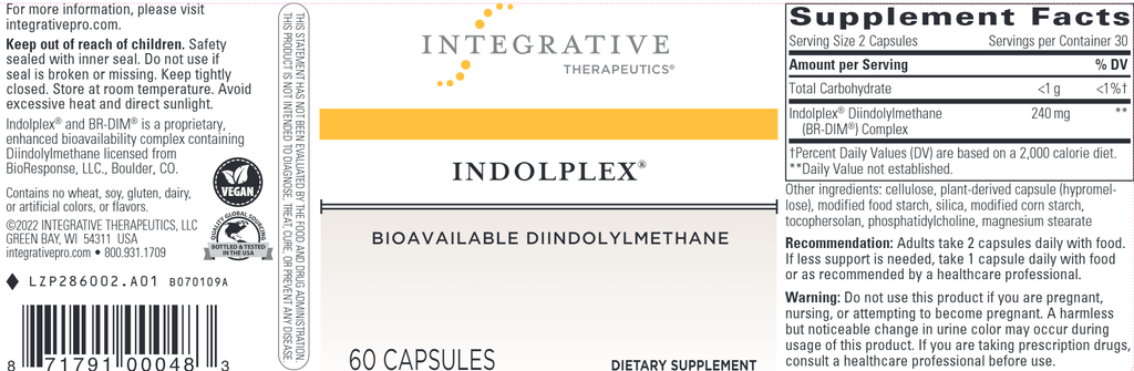 Indolplex® is a dietary supplement which contains a patented, bioavailable form of diindolylmethane (DIM®), a dietary indole found in cruciferous vegetables.