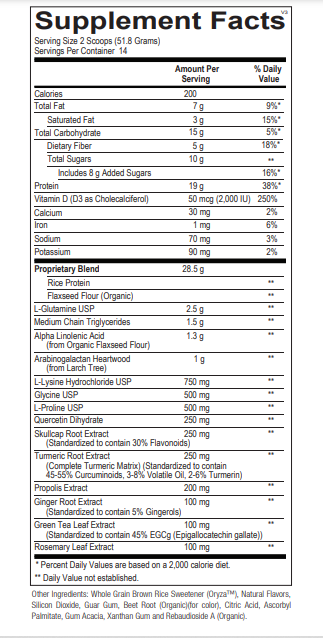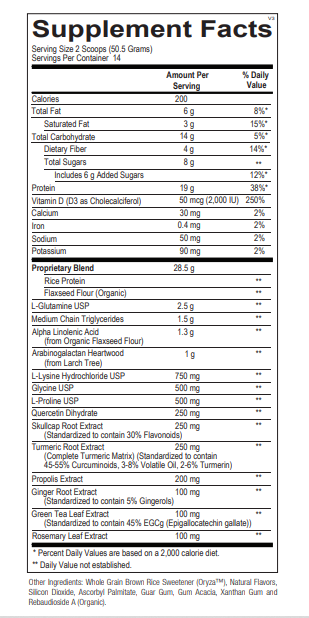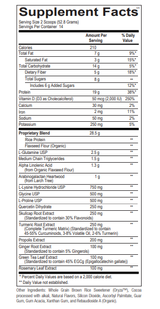 Mix 2 scoops (50.6 grams) of InflammaCORE® with 8-10 ounces of the beverage of your choice to the desired thickness, once daily or as recommended by your health care professional.