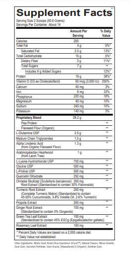 Skullcap Root Extract: This popular Chinese botanical has been shown to maintain normal inflammatory balance and support cardiovascular health. Skullcap possesses potent antioxidant properties. Research has shown it attenuates NFkB and inhibits COX-2 expression.