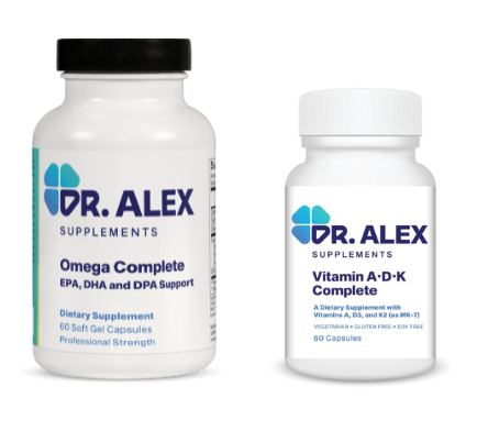 Vitamin A D K Complete (1ct) and Omega Complete (1ct 60 capsules).