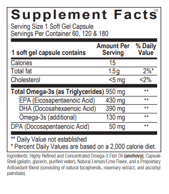 Omega-3 fats are critical to balancing out unwanted Omega-6 fats in the diet. EPA, DHA, and the forgotten omega-3 DPA are all included to support cellular health.
