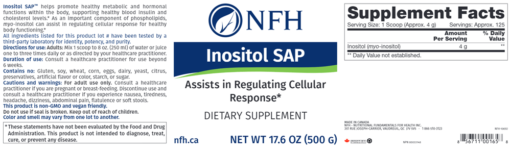 NFH Inositol SAP helps promote healthy metabolic and hormonal functions within the body, supporting healthy blood insulin and cholesterol levels already in the normal range. As an important component of phospholipids, myo-inositol can assist in supporting cellular response for healthy body functioning.*