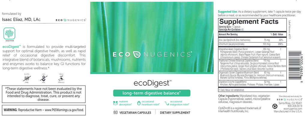 ecoDigest (formerly known as Integrative Digestive Formula) blends unique botanicals, mushrooms, enzymes and minerals to deliver a broad-spectrum of benefits for optimal GI health and function. This innovative formula also offers fast-acting relief for occasional digestive discomfort including gas and heartburn.*