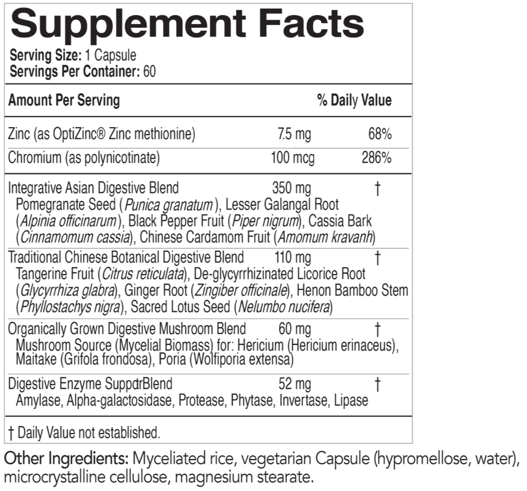 Zinc and chromium help address occasional diarrhea and gastric ulcers, and support overall digestive and immune health.*