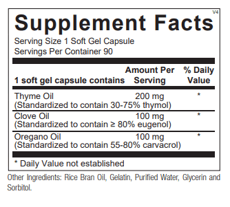 Oregano Oil: The oregano oil used in Intestin-ol is standardized to contain up to 75% carvacrol, which provides antioxidant protection and promotes healthy microbial balance.