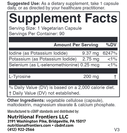 Iodine Plus is a vegetarian synergistic blend of two types of Iodine plus L-Tyrosine and Selenium to support the maintenance and proper function of a healthy thyroid.*