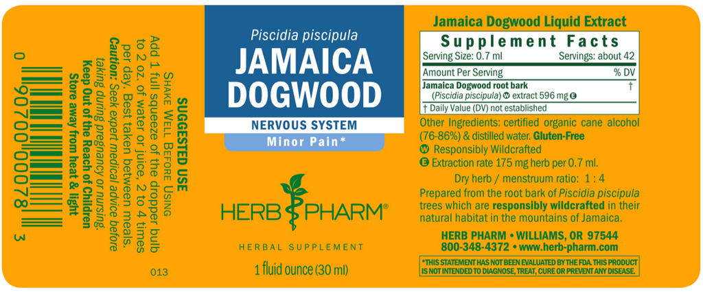 The herb is extracted in small batches with Certified Organic cane alcohol to maintain the balance of phytochemicals as they exist in the plant. Herb Pharm assures herb identity via macroscopic and organoleptic analysis, then confirm it through methods such as HPTLC fingerprinting specific to each herb. The liquid extracts are easily dispensed, taken in liquid form and added to water or other liquid.