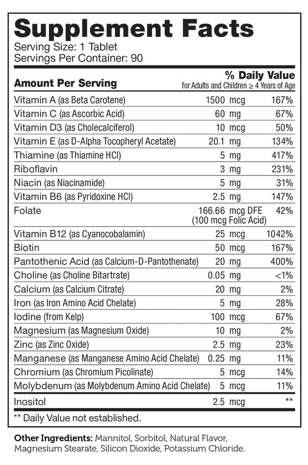 Zahler's Junior Multi contains a comprehensive blend of vitamins and minerals in a delicious chewable tablet.