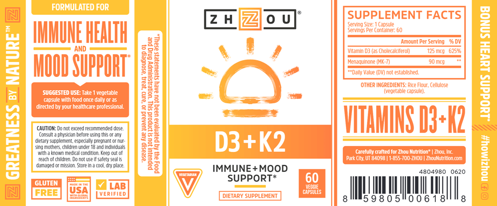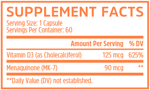 HEART HEALTH: Vitamin D3 may help your body absorb calcium while vitamin K2 may help your body direct calcium to your bones instead of joints and arteries. *