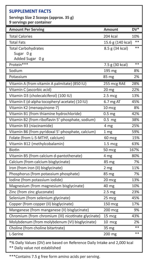 *This product may be used in conjunction with a ketogenic diet. Starting on a ketogenic diet may initially cause nausea / vomiting due to the stimulation of bile secretions; in which case, you may reduce the amount of each serving and/or drink slowly (e.g. 45 minutes/serving).