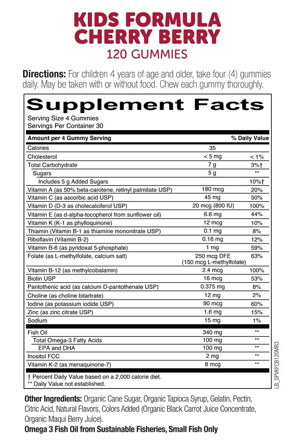 Directions: For children 4 years of age and older, take four (4) gummies daily. May be taken with or without food. Chew each gummy thoroughly.