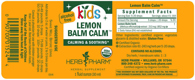 Herb Pharm prepares Lemon Balm Glycerite from the shade-dried herb of Melissa officinalis plants. Lemon Balm are grown on Certified Organic farms in southern Oregon.