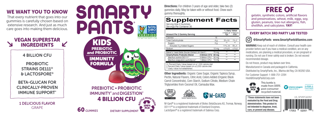 Vegan and Non-GMO Project Verified formula that combines a prebiotic and two strains of probiotics to support digestive health and strengthen the immune system - all in one easy serving kids love.*