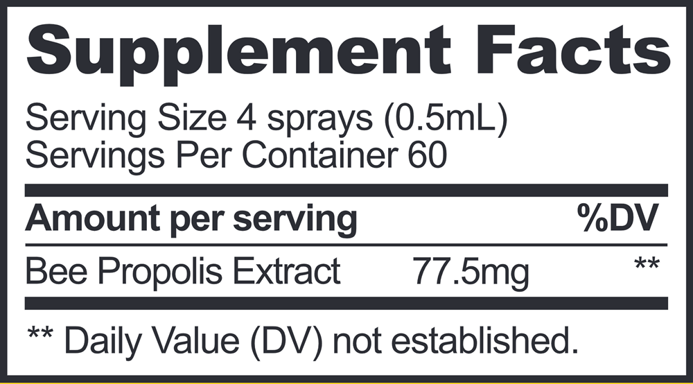 Consult a health care practitioner for use beyond 1 month. People allergic to bees, bee products, poplar tree products, or balsam of Peru may experience allergic reactions. As with all dietary supplements, consult your healthcare professional before use. Do not use product if safety seal is broken. Store in a cool, dry place to preserve freshness. Shake well before use.