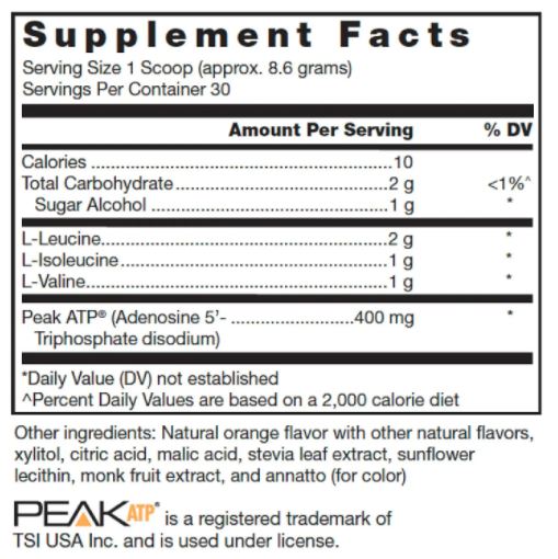 Klean BCAA + PEAK ATP® supplies a 2:1:1 ratio of the branched-chain amino acids leucine, isoleucine and valine, as well as 400 mg of ATP® in each serving. PEAK ATP® has been shown to support peak physical performance by increasing strength, power and muscle gain, allowing the body to train longer, harder and stronger. Together, these nutrients provide a direct source of energy to the muscles for performance and recovery.‡