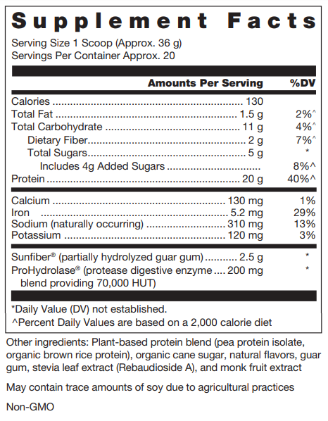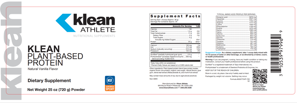 Protein powers muscle and is essential for the health, well-being and performance of any athlete. Klean Plant-Based Protein provides the essential amino acids for muscle-building, including branched chain amino acids. The special features in this formula include ProHydrolase® enzymes to break down protein for increased amino acid absorption and to ease digestion, along with Sunfiber® for gastrointestinal health.‡