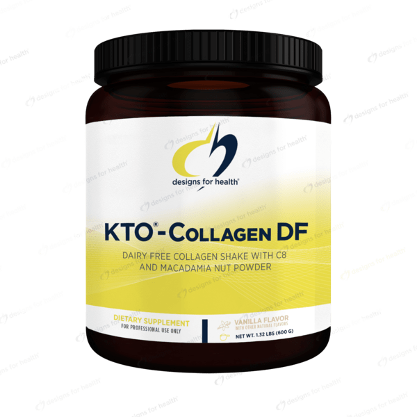 KTO®-Collagen DF is a delicious dairy-free and keto-friendly powder featuring collagen peptides and healthy monounsaturated fatty acids (MUFAs) from macadamia nut powder and medium chain triglycerides (MCTs) from caprylic acid (C8). Each 2-scoop serving of this stevia-sweetened vanilla-flavored powder provides 16 g of fat (7 g from C8 and the remainder from macadamia nut powder), 14 g of collagen peptides, and only 5 g of net carbohydrates.