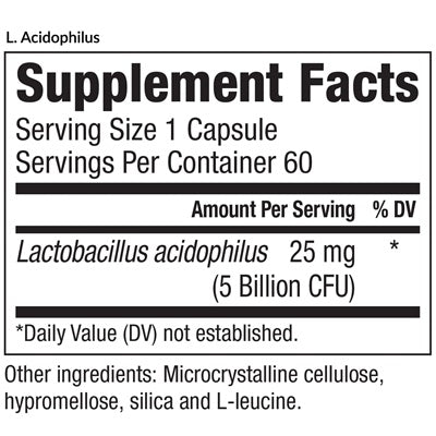 The trillions of microorganisms in the gut are largely associated with overall gastrointestinal function, appetite, weight management, and immune system response. Lactobacillus Acidophilus is one of the most important microorganisms in the small intestine and other linings in the reproductive area of the body. It can be found in certain sources of dairy and has an array of health benefits, but not everyone can tolerate this common allergen. This dairy-free formulation allows those with lactose intolerance to enjoy the benefits of a healthy diverse diet without GI distress.