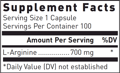 L-Arginine capsules, provided by Douglas Laboratories, contain 700 mg pure, crystalline L-arginine.